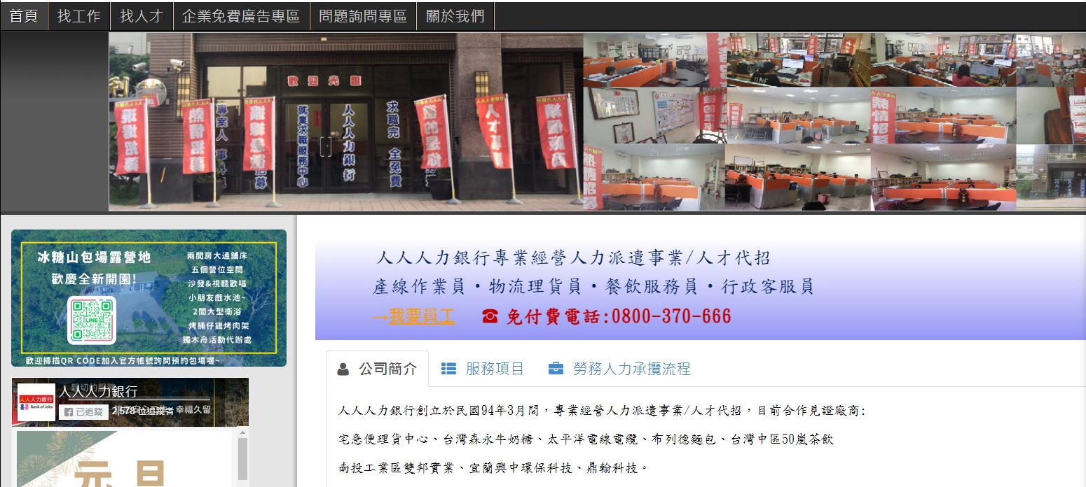人人人力銀行創立於民國94年3月間,提供製造業;組、測、包、作業品檢人力資源